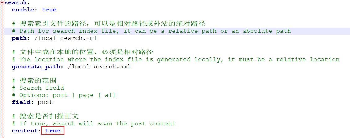 • 可以设置搜索内容,若仅搜索标题 (搜索内容 content 设置为 false) 则会加载快到飞起